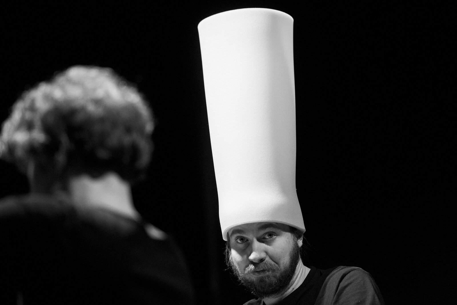 Co se stane v kuchyni, když k vaření pustíme hned několik kuchařů? Kuchařů více či méně šikovných…tedy spíše méně šikovných… tedy víceméně nešikovných. Nu co. Smícháme tělesný výraz, pohyb a zvuk, přidáme prvky objektového divadla a vaříme zprudka na hudební plotně. Grotesku řádně zahustíme klaunskými principy a opepříme absurditou i snovou fantazií. A můžeme servírovat divákům nejen nejmenším.