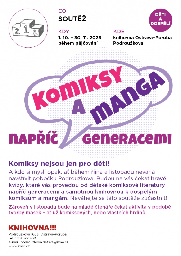 Během října a listopadu se můžete zúčastnit skvělé soutěže, která je pro celou rodinu. Zjistíte, že komiksy nejsou jen pro děti. V listopadu se mohou mladí čtenáři zapojit do tvorby masek, jak komiksových, tak vlastních hrdinů.