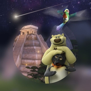 Lední medvěd Vladimír a tučňák James podniknou vesmírnou cestu na palubě rakety Polaris, aby přišli na zoubek polární záři. Zasáhne je však meteorit, a tak zcela neplánovaně havarují na úpatí staré pyramidy. Tady potkávají Lucii, všetečného kolibříka, kterému vrtá hlavou legenda vysekaná v kameni o světlech na nebesích, a tak se všichni tři nalodí na opravenou raketu Polaris a vydávají se do vesmíru. Navštíví Měsíc, pak oblast malých planetek mezi Marsem a Jupiterem, a nakonec přistávají na povrchu jedné z komet. Během své cesty hledají odpovědi na všechny otázky a nakonec se v pořádku vracejí na Zemi.