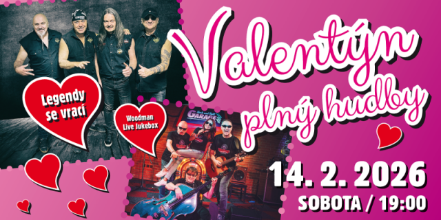 Přesně na Valentýna jsme pro Vás připravili dvojkoncert plný hudby, kde opět přivítáme kapelu LEGENDY SE VRACÍ s frontmanem Petrem Šiškou a další partičku WOODMAN LIVE JUKEBOX s frontmanem Marcelem Woodmanem. Obě party Vám akusticky zahrají největší světové i československé pecky . Přiveďte své partnerky a přijďte si zapařit !