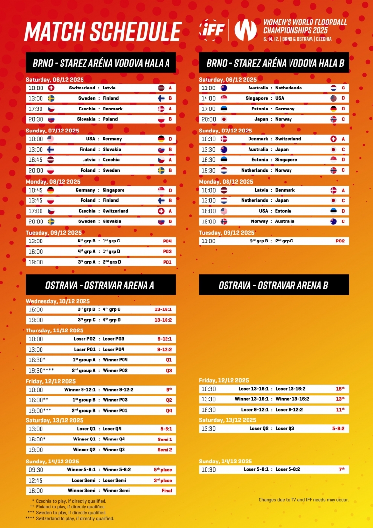 In early December 2025, Czech republic will become the center of world floorball. Ostrava and Brno will be hosting the Women's World Floorball Championship. The tournament will take place from December 6 to 14 and will offer fans and sports enthusiasts an unforgettable experience.