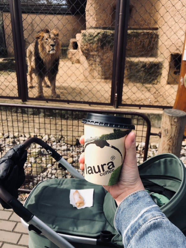 Przyczepa kempingowa z pyszną kawą i małymi ciastkami we środku ZOO znajduje się obok wystawy Na statku. Zgodnie z najwyższymi standardami przygotują cappuccino lub lungo na wynos. Dla dzieci mają kakao lub gorącą czekoladę z fabryki czekolady.